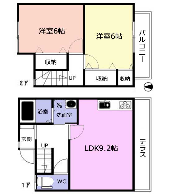 | 間取 | 2LDK | 間取詳細 | (1F)LDK9.2、(2F)洋6、(2F)洋6 |