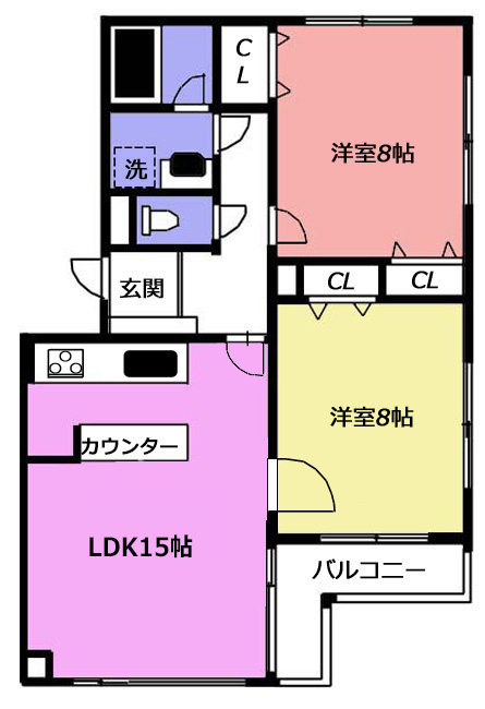 | 間取 | 2LDK | 間取詳細 | 洋8、洋8、LDK15 |