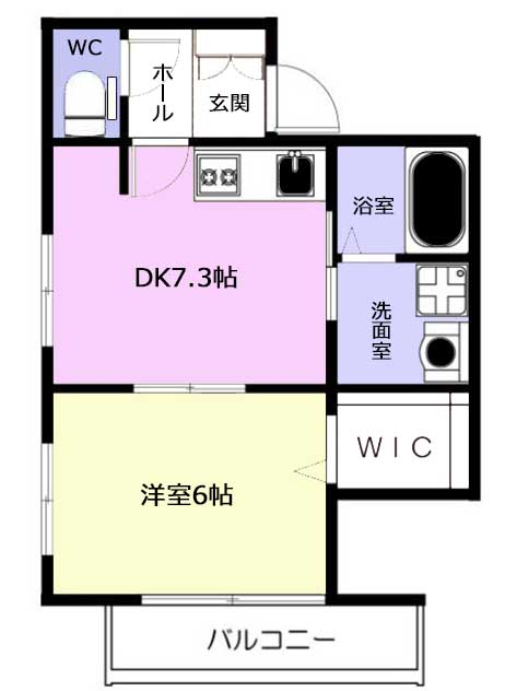 | 間取 | 1DK | 間取詳細 | 洋6、DK7.3 |