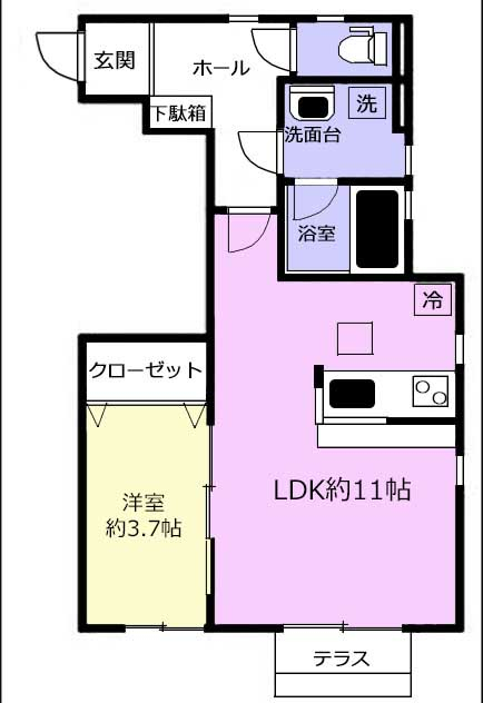 間取詳細 | 洋3.7、LDK11 |